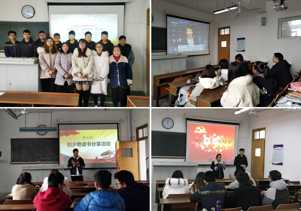自2018年10月底成立以来,初心社先后举办了纪念刘少奇诞辰120周年读书分享、“学习全国教育大会精神,献礼校第四次党代会”学习交流、“党员扑克”趣味理论学习等系列活动。作为学生社团党支部进行党员社团化自我教育管理机制进行有益探索的重要载体,初心社打破传统自上而下的党员教育管理模式,丰富了学生党员“两学一做”常态化制度化形式,增强了开展“不忘初心、牢记使命”主题教育的生动性。同时,也让来自不同学生社团以及每学年新转入的专转本学生党员进一步增强凝聚力。