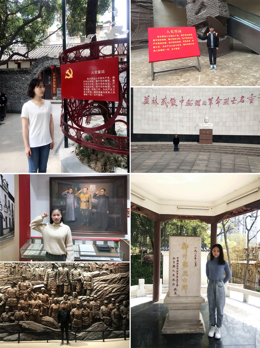 活动期间,党支部21名毕业班党员利用工作、实习之余走进红色圣地,追寻红色记忆,倾听初心声音,感受红色力量,绽放青春光芒。他们分别来到雨花台烈士陵园、红岩革命纪念馆、侵华日军南京大屠杀遇难同胞纪念馆、连云港市革命纪念馆、镇江烈士陵园、泰州市革命烈士事迹陈列馆、丹阳革命陈列馆、溧水烈士林园、赣榆战役纪念地、益林战役陈列室、江姐纪念馆、邓仲铭烈士纪念碑亭等地追忆先烈奋斗历史,缅怀先烈丰功伟绩,学习先烈英勇革命精神,并以重温入党誓词的形式铭记党员身份,牢记党员使命,承诺在未来工作岗位上忠诚履责、尽心尽责、勇于担责。