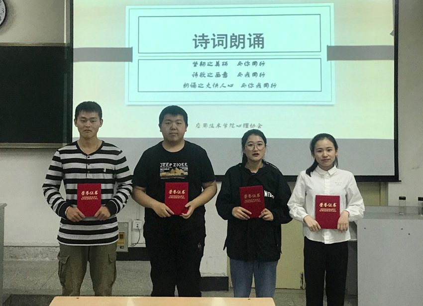 为了让同学们在优美的诗词韵律中感受生命坚韧力量,锤炼坚韧品格,提升心理自助互助能力素养,5月27日晚,我院心理协会在敦行楼115教室举办“坚韧之美,你我同行”诗词朗诵比赛。