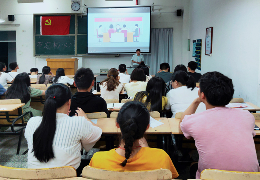 在全党扎实开展“不忘初心、牢记使命”主题教育之际,我院学生社团党支部于6月3日晚在敦行楼115教室举办“不忘初心、牢记使命”专题党课暨2019届毕业生党员“最后一次党课”。党支部书记包家官领学《中国共产党党员教育管理工作条例》并与大家一同观看党课微视频《初心,从未改变》。他强调,全体党员要全面掌握、严格执行《中国共产党党员教育管理工作条例》的各项要求,切实增强“四个意识”、自觉践行“两个维护”,在日常的学习工作中充分发挥党员先锋模范作用;同时提醒2019届毕业班党员要站好最后一班岗,要永远保持建党时中国共产党人的奋斗精神,始终牢记习近平总书记的告诫,走得再远、走到最光辉的未来,也不能忘记走过的过去,不能忘记为什么出发。