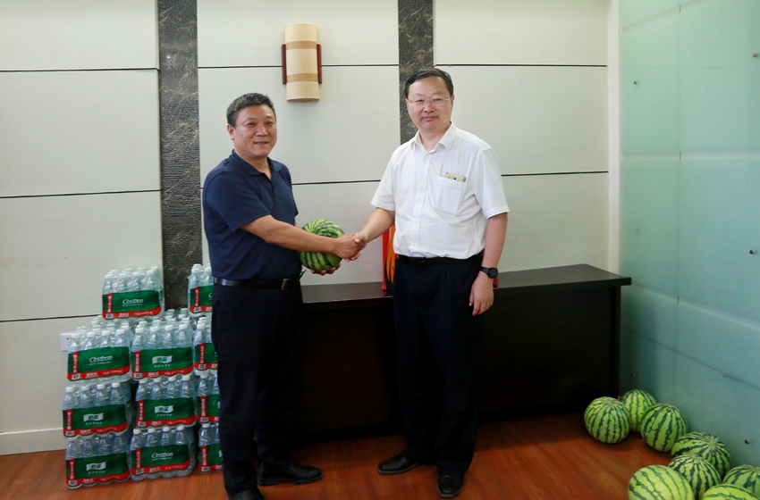 7月18日上午,正值酷暑高温,校领导宁晓明、李梅英在校长办公室、校工会等相关部门负责同志陪同下,到我院看望、慰问暑期仍然坚守在一线的教职员工,并送上消暑降温慰问品。