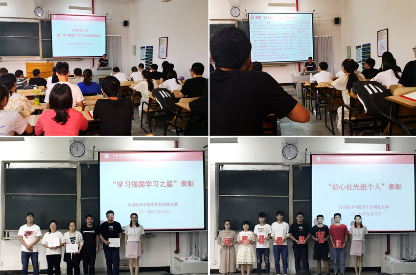 会上还对作为学生社团党支部进行学生党员自我教育、管理、监督机制探索重要载体的学生党员初心社进行了2018-2019-2学期先进个人表彰。