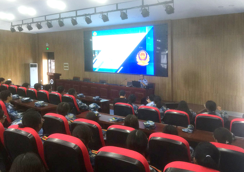 9月10日,学院保卫科邀请高新区花果山派出所庞国栋警官在敦行楼201报告厅给军训新生开展校园安全主题教育活动。