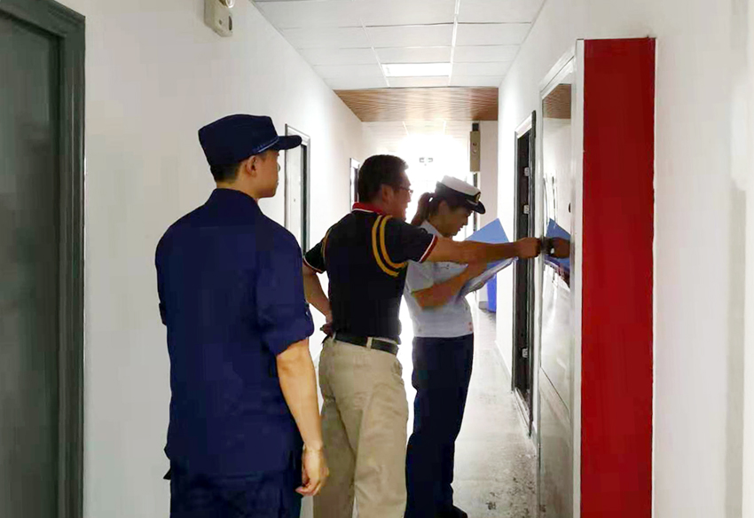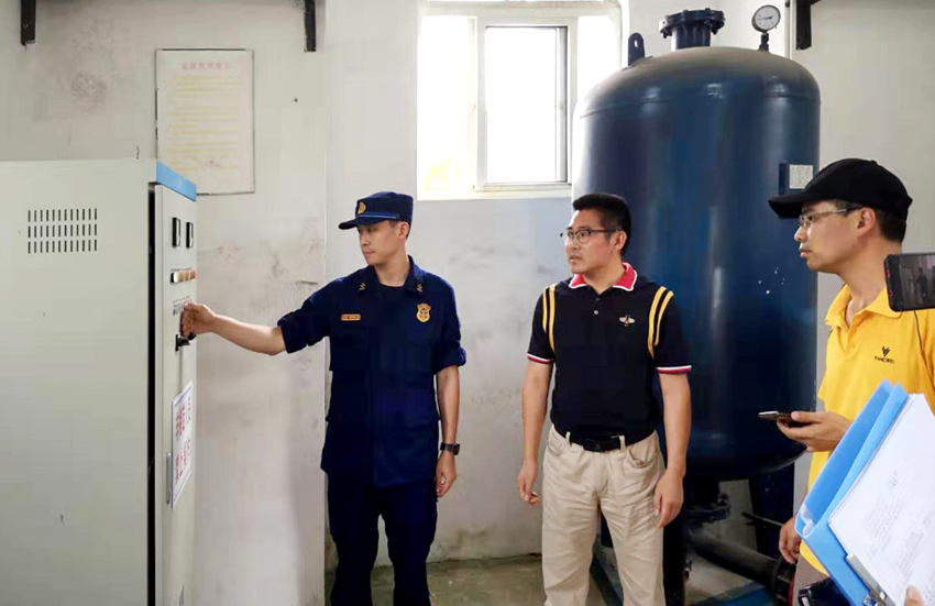 我院保卫科黄彬首先介绍了我校区的楼宇场馆的基本情况、主要配置消防设施及日常消防宣传教育、消防巡查检查、消防设施维护保养情况。随后刘函如到学生一号公寓和三号公寓对室内消火栓栓口水压做了测试,并做了出水试验。对学生宿舍等人员密集场所的灭火器配置、疏散应急照明、疏散指示灯、安全出口等做了检查,在学院水泵房做了自动手动气泵切换、手动起泵试验。