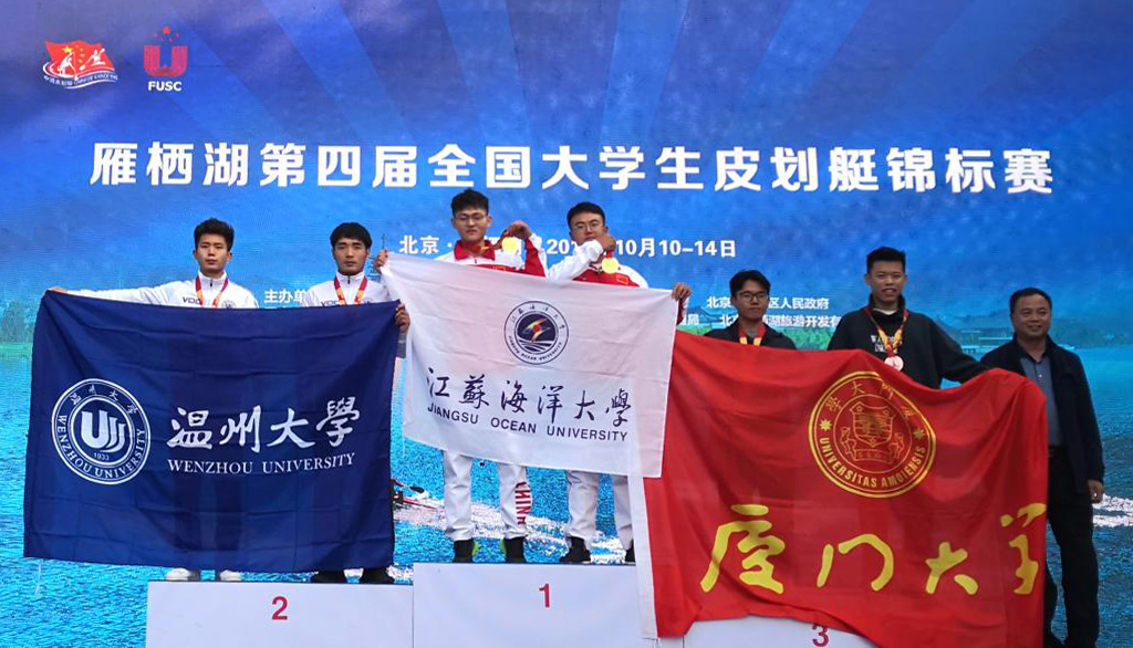 10月12日至13日,第四届全国大学生皮划艇锦标赛在北京怀柔区雁栖湖上举行。由我院L机械181班肖瑞、付琪龙两名同学组成的校皮划艇队发挥出色,在阳光组男子双人皮艇200米和500米直道竞速二项比赛中,均获得第一名,勇夺二块金牌。