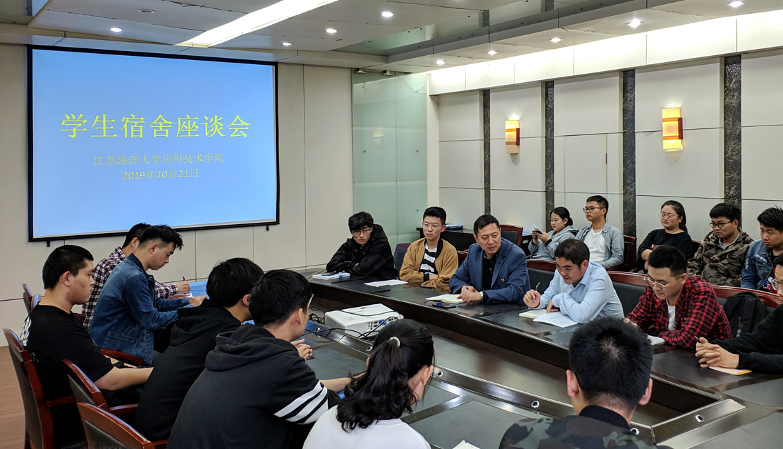 近日,学院结合“不忘初心、牢记使命”主题教育开展学生宿舍管理专题调研,在深入宿舍检查、走访的基础上于10月21日下午在行政楼三楼会议室召开座谈会,倾听一线声音,查摆实际问题。院党委副书记万金店主持会议,来自我院30个新生班的普通学生代表参加会议。