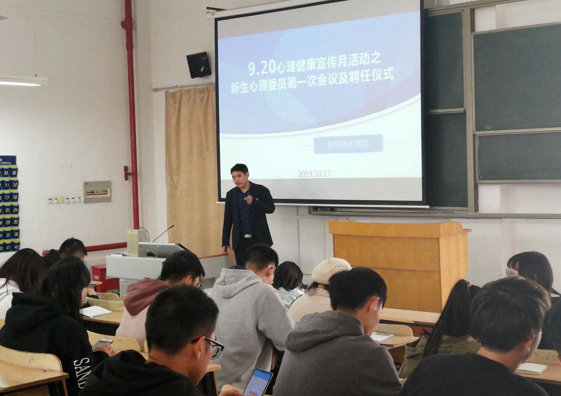 10月17日中午,学院在敦行楼113教室召开了2019级新生心理委员第培训会暨聘任仪式。来自全院30个新生班级32名新生心理委员及院心理协会全体成员参加会议。院学工办副主任、心理辅导员包家官主持会议。