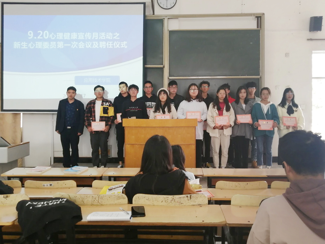 包家官就大学生心理健康教育意义、班级心理委员工作职责、9·20心理健康宣传月活动安排、新生心理普查有关程序及注意事项等进行详细讲解和培训。他用诙谐幽默的语言诠释了心理学的神奇与奥秘,用生动而真实的实例让同学们感知心理健康教育的重要,并着重介绍了班级心理委员工作内容、工作规范及工作要求。随后,包家官为各班心理委员颁发聘书并合影留念。通过聘任仪式增强班级心理委员的仪式感与责任感,扎实推进9.20心理健康主题教育活动。