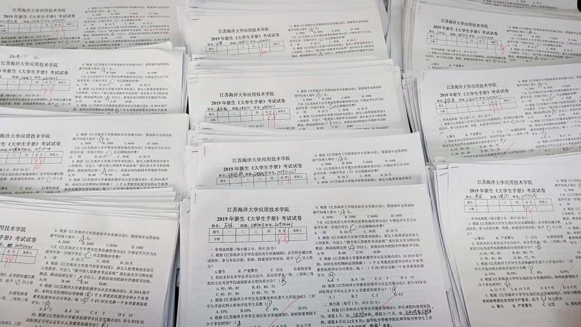 为使新生全面学习了解我校学生管理的有关规定,增强学生遵守校规校纪的自觉性,学院于11月11日晚组织开展新生入学教育《江苏海洋大学2019学生手册》考试。全院30个新生班1216名同学参加考试。