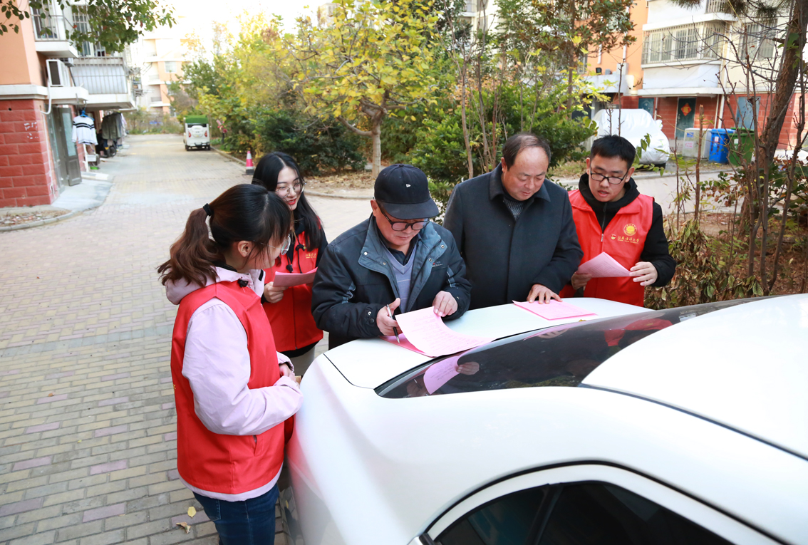 在学院领导班子的带领下,师生党员们先后来到社区居民楼与生活服务区,通过张贴创建文明城市宣传标语,发放创文宣传单与手提袋,开展创文活动问卷调查与知识讲解等形式让社区居民充分了解“创文”的必要性、紧迫性和重要意义,引导他们积极投身“创文”工作中。进行创文宣传和问卷调查的同时,院领导还以交流访谈的形式就社区居民对创文认识及应知应会知识掌握情况等进行调研,以实际行动助推事业发展,为群众办实事,做好事,践行初心和使命。