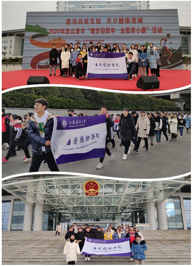 2020年1月1日,为倡导绿色、健康的出行和生活方式,抒发对美好生活的期盼,连云港市举办2020年“健步迎新年,全面奔小康”活动。我院组织30余名师生积极参加,用健步走的方式迎接2020年的到来。