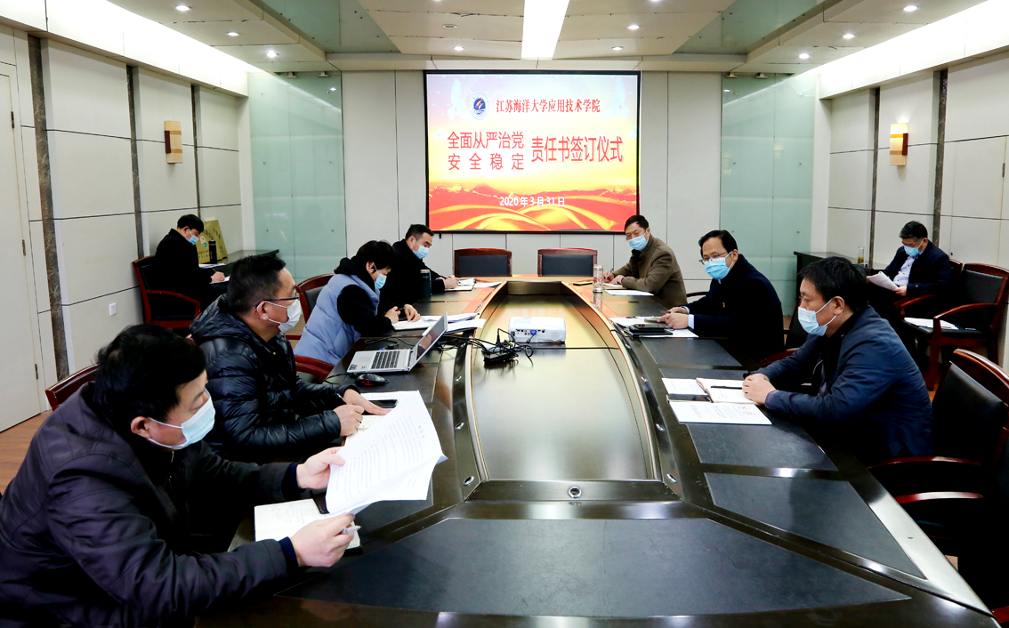 为深入贯彻落实新时代党的建设总要求,营造风清气正的政治生态,切实维护校园安全稳定,3月31日下午,我院在行政楼会议室举办全面从严治党暨安全稳定工作责任书签订仪式。党委书记周清华、院长丁兆奎、党委副书记万金店,副院长李明金、隋福利,全体党支部书记、科办负责人参加会议。