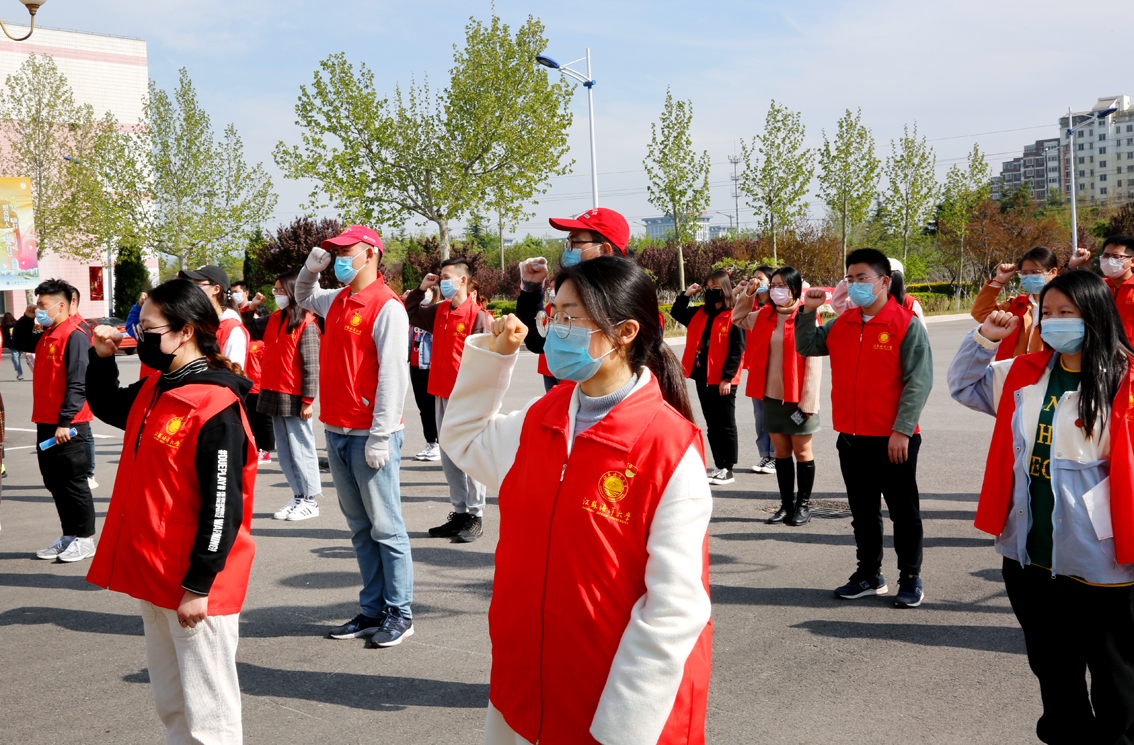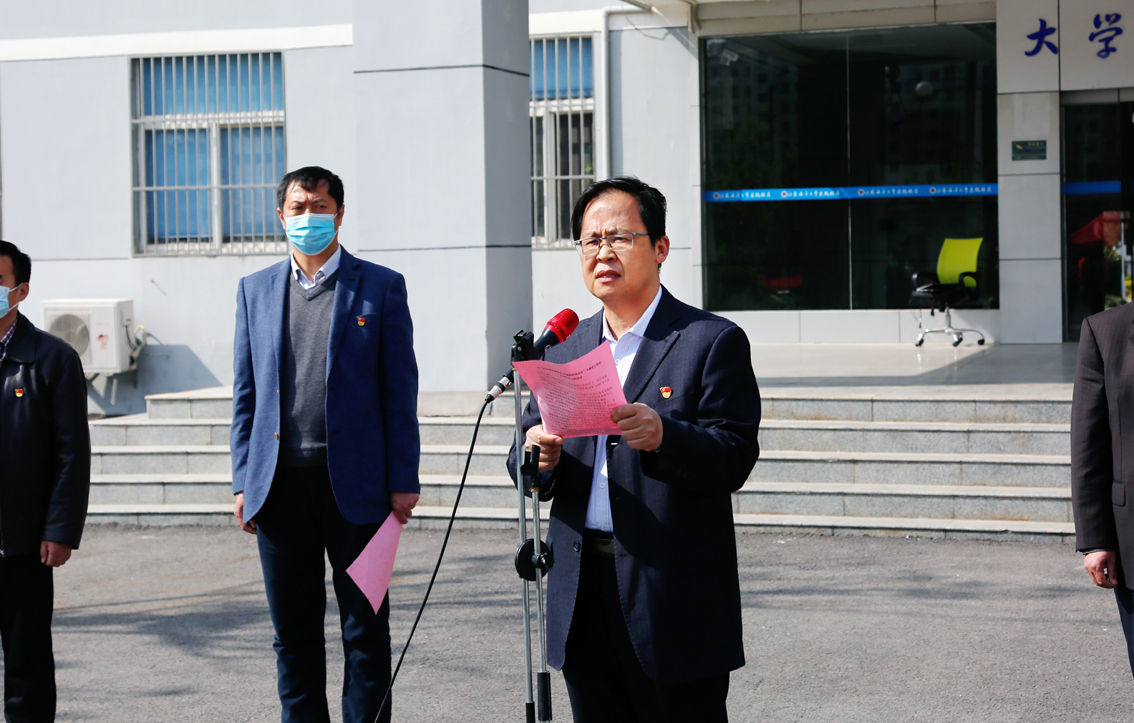 为深入贯彻落实习近平总书记关于打赢疫情防控阻击战重要指示精神,激励全院党员在疫情防控工作中勇挑重担,充分发挥先锋模范作用。4月18日下午,学院在行政楼广场举办“防疫重任勇担当冲锋陷阵我先行”主题党日活动启动仪式。学院全体领导班子成员、全体教职工党员及返校学生党员参加了仪式。院长丁兆奎主持仪式。
