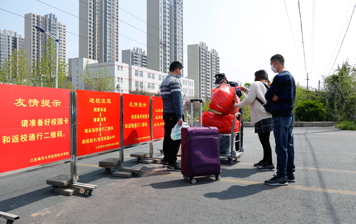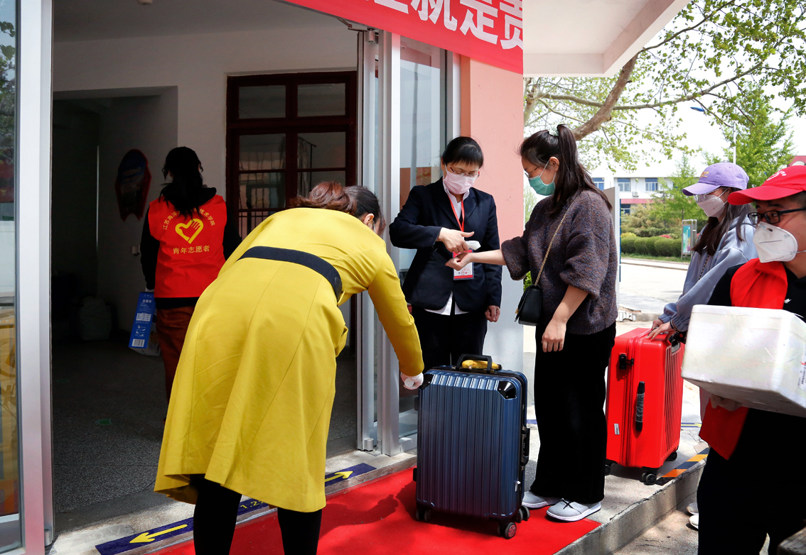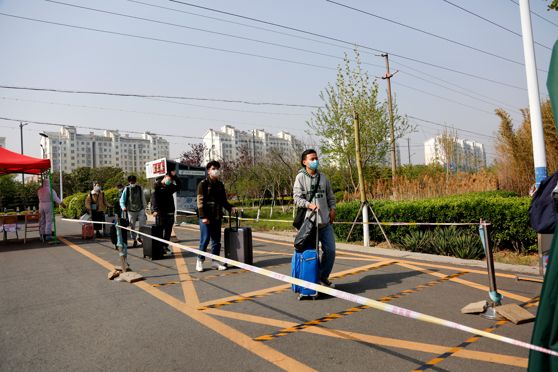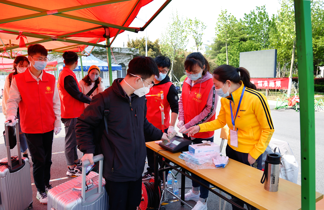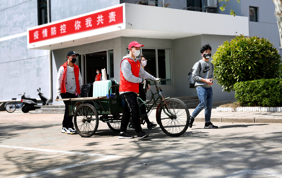 学院党委书记周清华、院长丁兆奎和学院全体教职工、学生党员志愿者严格落实防控责任,用安全、有序、温暖迎接学生“回家”。同学们陆续从指定通道,经监测体温后进入校园,志愿者帮助学生们搬运大件行李。