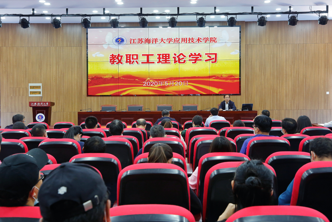 5月20日下午,学院在敦行楼报告厅召开全院教职工大会,传达学习《江苏海洋大学事业发展规划纲要(2020-2025年)》、学校中层干部会议精神和2020年党政工作要点,动员全院干部职工统一思想,振奋精神,紧密联系学院实际,用学校党委新精神指导推动各项工作。院党委书记周清华主持会议并讲话。院领导丁兆奎、万金店、李明金、隋福利,全体教职工出席会议。