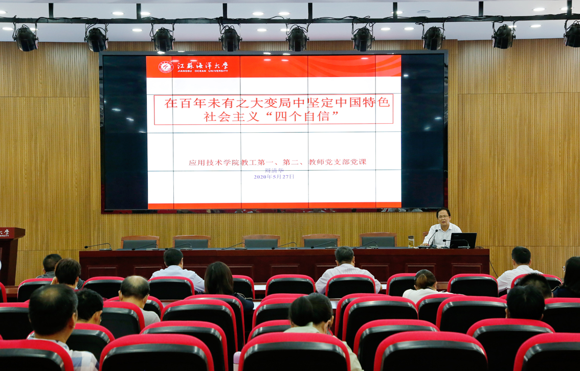 为加强党员干部教育培训,更加坚定“四个自信”,坚决做到“两个维护”。5月27日下午,党委书记周清华在敦行楼报告厅为全体院领导,教师党支部、教工第一和教工第二党支部全体党员、积极分子和非党员教师上了一堂题为“在百年未有之大变局中坚定中国特色社会主义‘四个自信’”的生动党课。