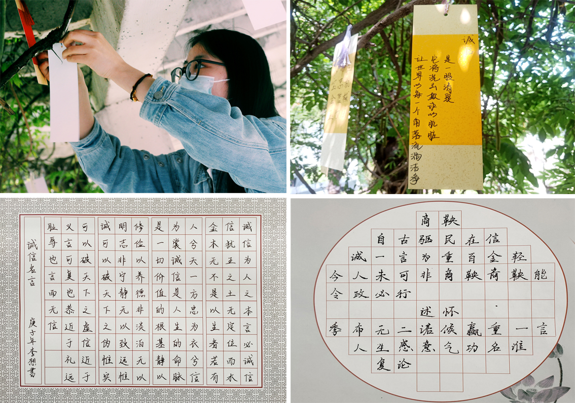 5月4日在郁州路木香花亭,组织学生开展“感恩祖国,诚信告白”活动,将诚信理念融入日常生活,进一步增强学生自我督促的自律意识。