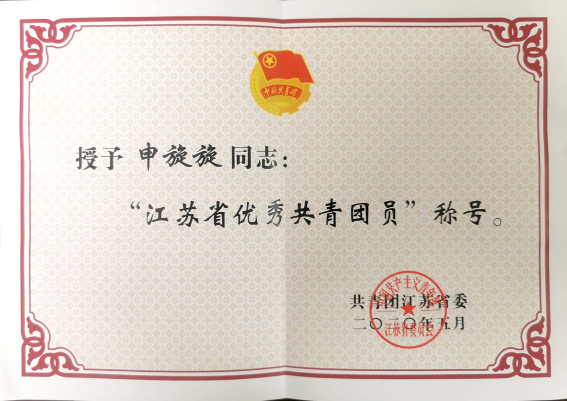 作为全校仅有的两名获得本年度团省委“两红两优”表彰的青年学子之一,申旋旋同学展现了我院青年学子政治立场坚定、道德品行优秀、模范作用突出的良好精神风貌。她身兼班级学习委员,省在线朋辈心理辅导员、校朋辈心理辅导员,学生社团党支部秘书、院心理协会团支书等多项职务,先后获得国家奖学金、校一等奖奖学金、单项奖学金、第五届全国应用型人才综合技能大赛二等奖、省第十届“艺博杯”金奖、省第十四届大学生职业规划大赛本科组三等奖、省教育系统关工委2019年主题教育读书及征文活动三等奖、市校园之星季军等奖项,并荣获省艺术点亮童心优秀志愿者、江苏省在线朋辈心理辅导员夏令营优秀志愿者、校十佳大学生、优秀学干、优秀团员、社会实践先进个人等荣誉称号。