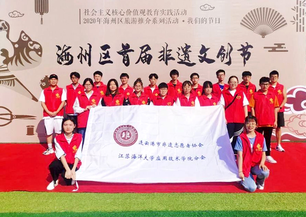 9月19日下午,由海州区文化体育和旅游局与新南街道办事处主办、我院非遗协会参与协办的社会主义核心价值观教育实践活动---海州区首届非遗文创节在海宁社区公园足球场举行。我院非遗协会选派20余名大学生非遗志愿者全程参与本次活动,致力校园非遗传承的同时助力街区非遗传承。