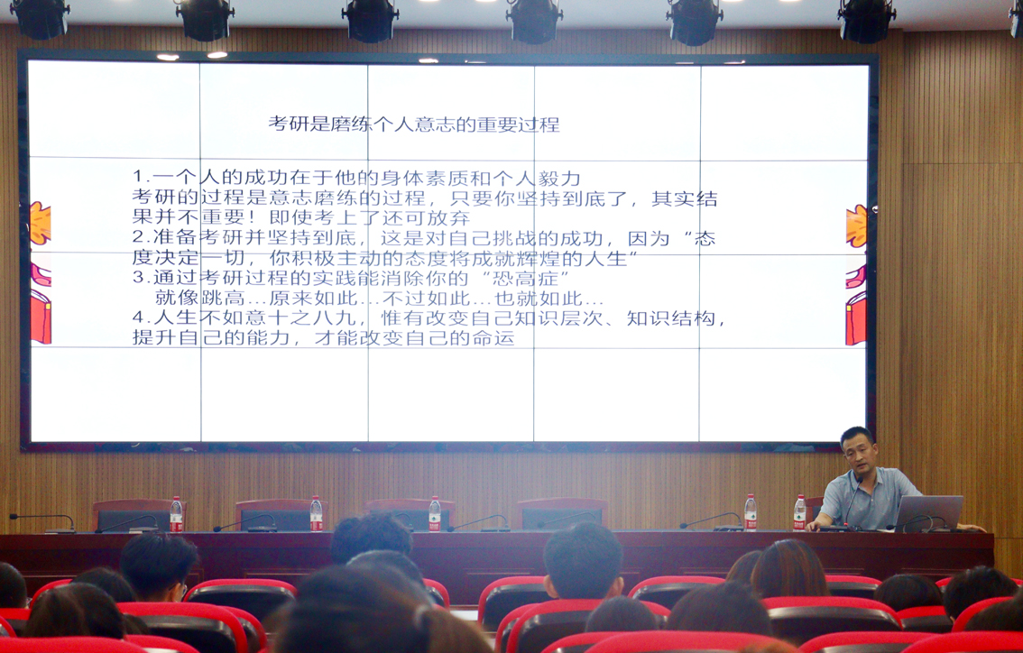 为贯彻落实全国研究生教育会议精神,进一步增强同学们对研究生入学考试的认识,激发考研热情,明确考研目标,掌握相关考研技巧,近日,学院在敦行楼201报告厅举办了系列考研宣讲会。