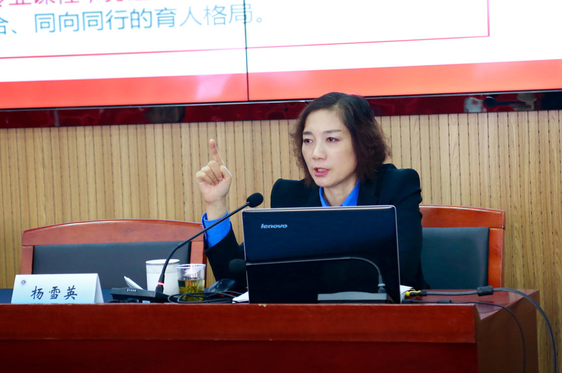 杨雪英强调,教师是课程思政的直接实践者,是将立德树人根本任务贯穿于教育教学全过程的关键。广大教师要深刻认识到每一门课程都必须具有育人功能,真正树立起课程思政的育人理念,主动承担好育人责任,努力挖掘课程思政元素,将思想政治教育有机融入课堂教学,实现知识传授与价值引领的有效结合,实现立德树人的润物无声。