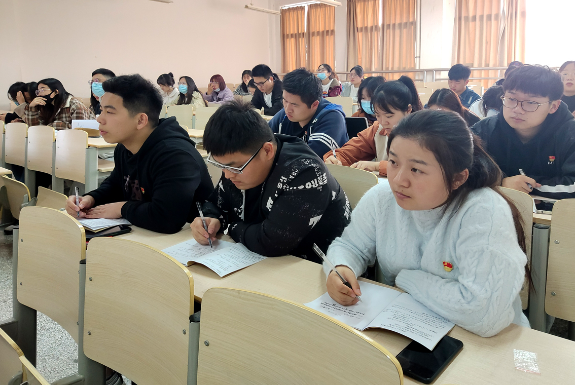 接着,支部委员张明祖还就自己学习、理解向全体党员作了分析交流,勉励全体党员,特别是大学生党员自觉努力学习习近平新时代中国特色社会主义思想及科学文化知识、技能,听党话,跟党走,自觉适应国家即将开启的全面建设社会主义现代化国家的新征程,融入我国加快构建以国内大循环为主体、国内国际双循环相互促进的新发展格局,承担起实现“十四五”规划和二〇三五年远景目标的建设使命与责任,在实现中国梦的过程中同时实现个人梦想。