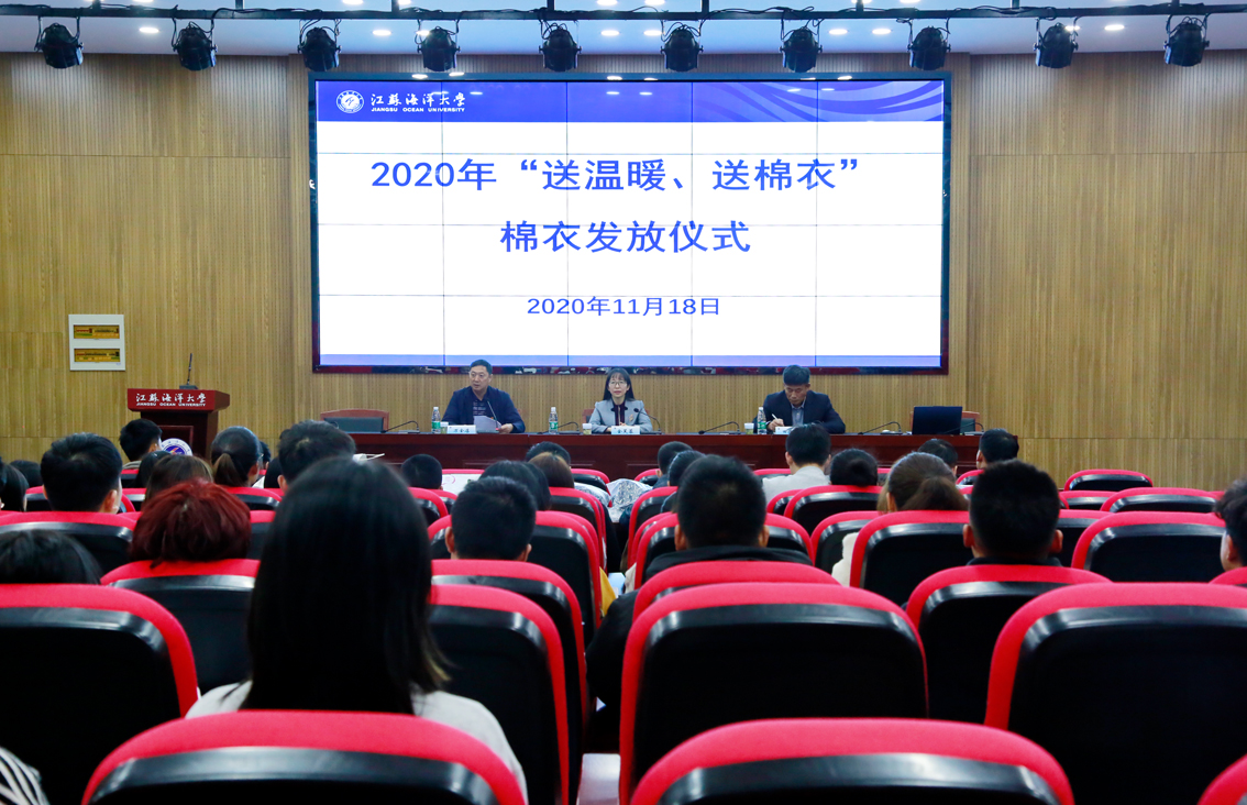 11月18日下午,学院在敦行楼报告厅举行棉衣发放仪式,校党委常委、副校长金芙蓉、校党委学工部(校学生处)副部(处)长田德勇出席仪式,院党委副书记万金店主持仪式。
