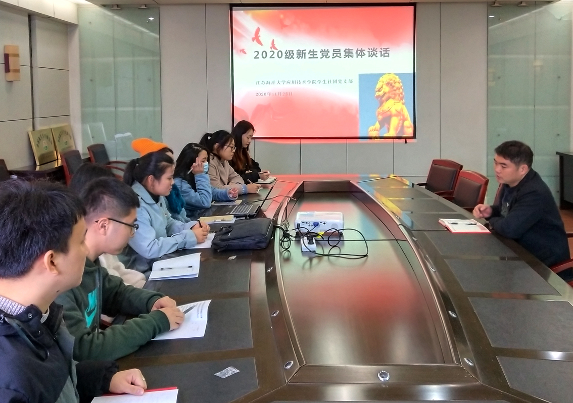 为增强新生党员的责任意识与担当意识,激励他们在新的学习阶段不忘初心、砥砺前行,11月25日中午,学生社团党支部在行政楼三楼会议室开展2020级新生党员集体谈话活动。