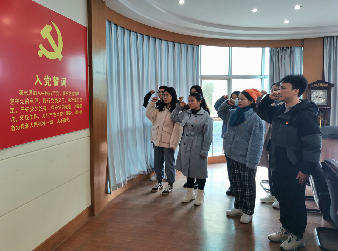 谈话结束后,全体新生党员面对党旗,庄重举拳宣誓,重温入党誓词。