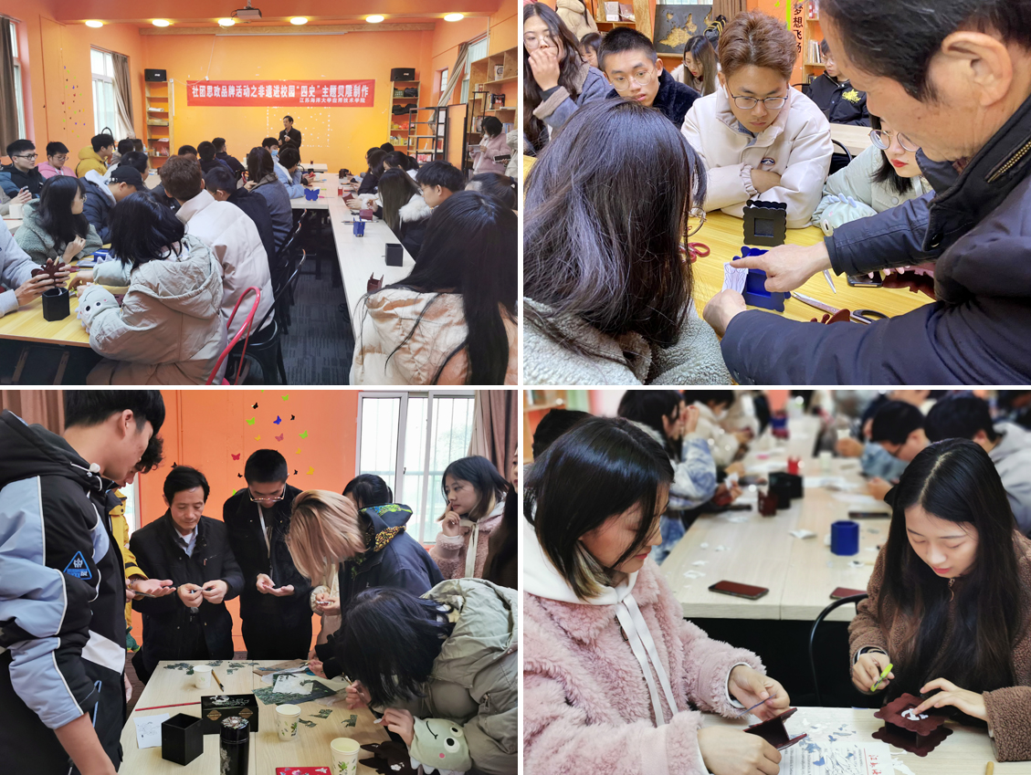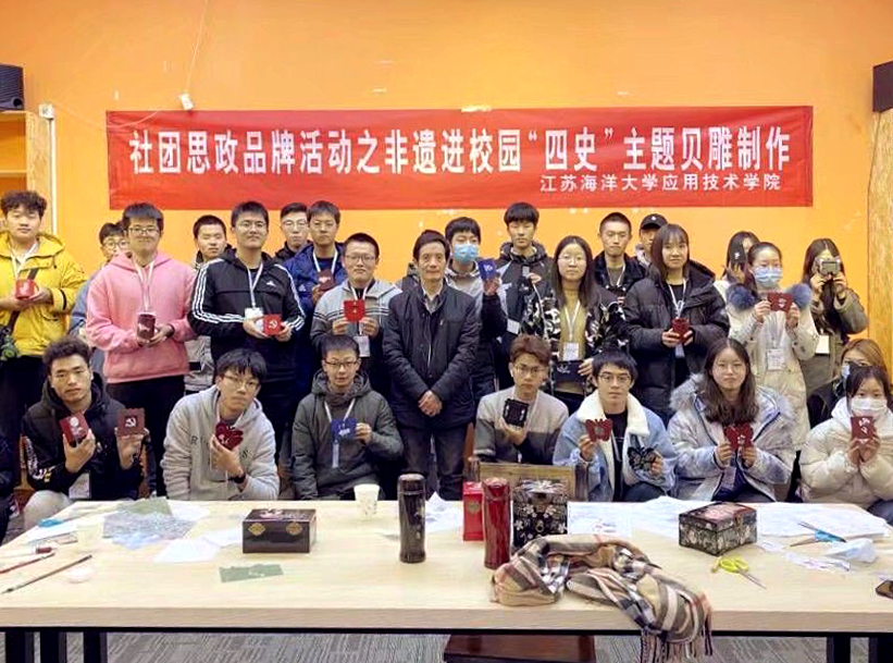 11月26日下午,学院学生社团党支部、关工委、非遗协会在玉成楼创客空间举办社团思政品牌活动之非遗进校园“四史”主题贝雕制作活动。