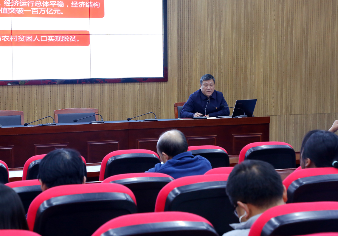 丁兆奎从决胜全面建成小康社会的成就、我国发展环境面临的深刻变化、“十四五”规划和二0三五年远景目标和全会提出的“十二项重要举措”等方面,对党的十九届五中全会精神作了深入浅出的阐述和讲解。