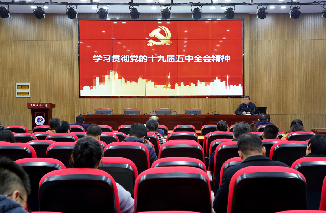 11月25日,学院在敦行楼报告厅举办教职工集体学习会,院长丁兆奎作“学习贯彻党的十九届五中全会精神”专题报告。