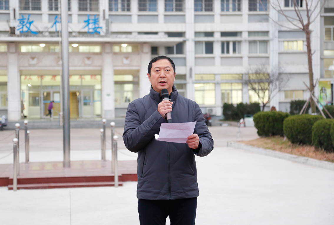 万金店代表学院党政领导发表讲话。他指出,学院师生在“一二·九”纪念日凝聚国旗下,聚焦“做好学生教育管理服务,助推学风建设提质增效”的主题,举行庄严的升国旗仪式,就是要号召全院师生以“不怕困难,不怕牺牲,勇于担当,勇于胜利”的一二·九精神做好学生管理服务践行立德树人,做到勤学乐学好学励志成长成才。他详细传达了校学生处《关于进一步做好学生教育管理服务工作的通知》与《关于开展2020年“学风建设活动月”的通知》文件精神并强调,在伟大革命导师恩格斯诞辰200周年,党的十九届五中全会胜利召开的2020年,广大学子应牢记恩格斯“现代的命运,取决于青年人崇高而奔放的激情”的教诲,在党的十九届五中全会锚定2035年远景目标下砥砺奋进,刻苦努力、勤学励志,用所学所获,为中华民族的伟大复兴积蓄腾飞的力量,在新时代新征程书写青春篇章。他同时勉励学子们加强自律意识,严守校纪校规,树立正确的学习观、成才观,增强学习动力,主动学习、学会学习、学有所获、学有所成。