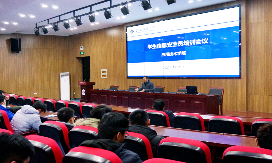 为贯彻落实高校立德树人的根本任务,围绕学生、关照学生、服务学生,维护学生合法权益,保持校园安全稳定,创建“安全、文明、和谐”的校园环境,12月9日中午,学院在敦行楼201报告厅召开班级信息安全员培训会。院党委副书记万金店对来自全院71个班级的安全信息员进行培训。院学工办副主任包家官、辅导员孙成广参加培训会。