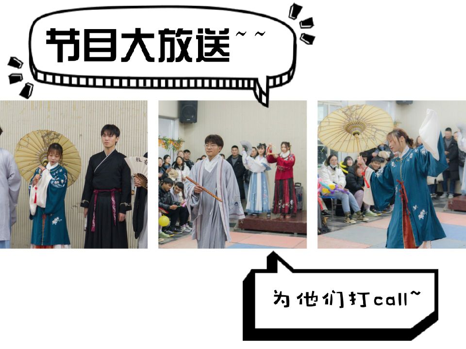 游园结束后,同学们来到社联欣赏冬至文艺演出,分别由国风社带来的古典走秀、新媒体带来歌曲表演《不染》,太极社带来舞剑,团委带来的歌曲《红昭愿》,让同学们感受到别样的冬至文化盛宴。