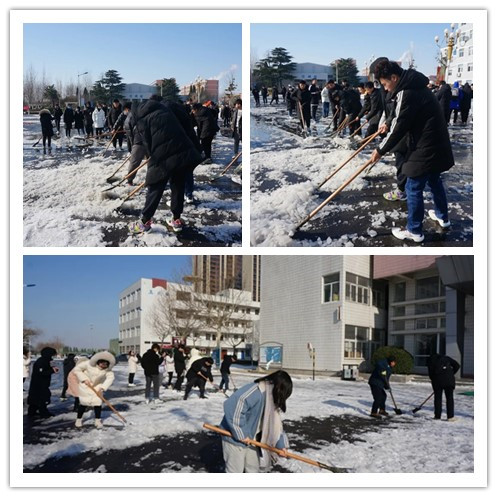 第二小组的同学们开展了最美冬日雪,最美扫雪人的劳动教育活动。青马班的学员们领取铁锹、扫帚等装备后,开始在校园厚德楼门口,主要道路上打响了扫雪除冰“歼灭战”。他们个个不畏严寒,积极主动,相互配合,齐心协力,挥舞着铁锨和扫帚,你铲我扫,一派热火朝天的景象。经过近2个小时的团结奋战,校园主干道的积雪已清扫干净,为师生开辟了一条安全之路。