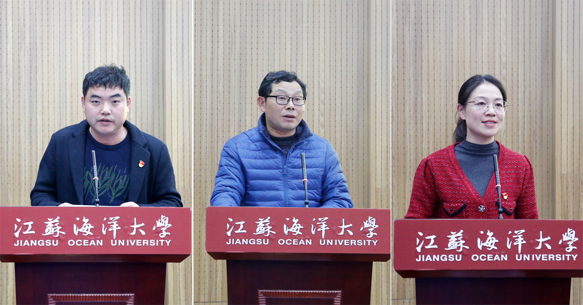 获奖论文作者学生社团党支部书记包家官、商科部主任戴华江、学生第一党支部书记王晓丽作专题交流发言。