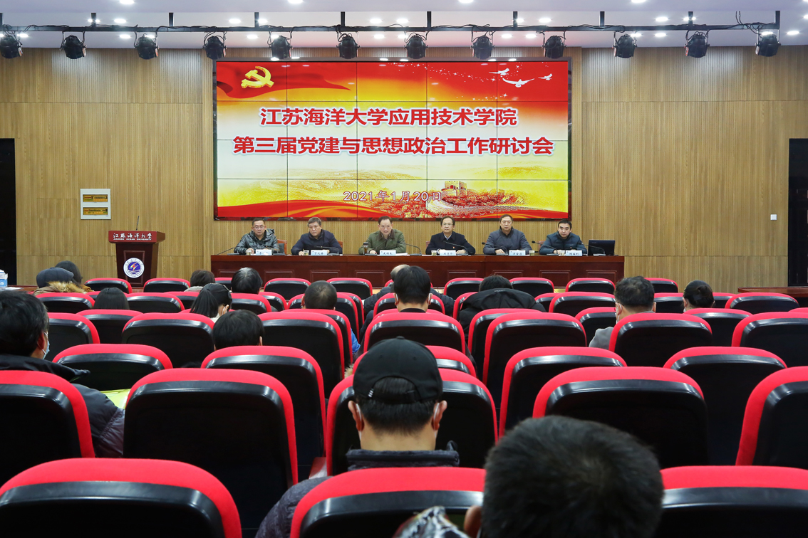 院党委书记周清华作题为《面向新时代,把握新要求,努力把学院党的建设与思想政治工作提高到一个新水平》的工作报告。报告实事求是地回顾总结了学院近两年来党建与思想政治工作在推进立德树人、促进人才培养、增进校园和谐、服务转型发展发挥的重要作用和取得的显著成绩。他指出,两年来,学院荣获江苏省高校“党建工作创新奖”三等奖、连云港市先进基层党组织、校“最佳党日活动”等多项荣誉表彰,在校党建和思想政治工作年度考核中取得优异成绩,得到上级党组织充分肯定。周清华指出,2021年是建党一百周年,是“十四五”规划开局之年,做好2021年的工作对学院事业发展意义深远,做好党建和思想政治工作,使命光荣、责任重大,并从坚定抓好政治建设、压实从严治党责任链条、把党建优势化为发展优势和深入推进“三全育人”等8个方面对新一年党建与思想政治工作进行部署。他强调,要坚定发展信心,树立必胜信念,以高度负责的态度、顽强拼搏的精神、求真务实的作风,不断加强党建和思想政治工作,为促进转型发展、高质发展,培养更多更好的社会主义事业建设者和接班人而奋斗!