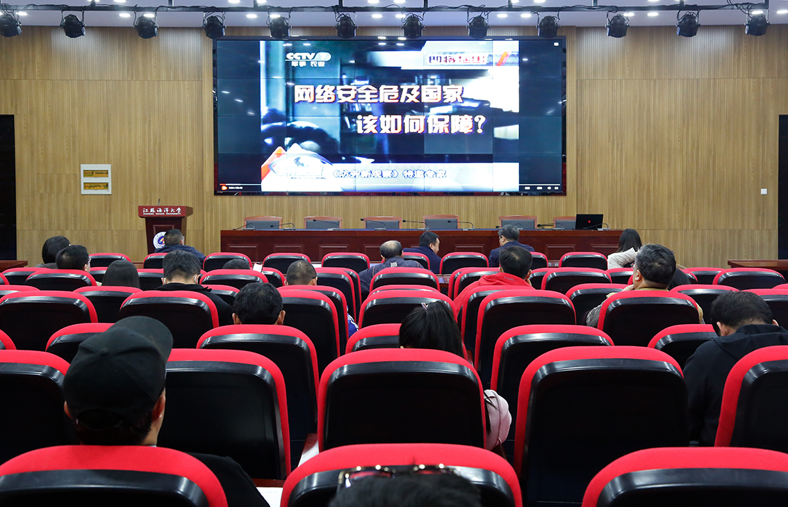 会上,教职工集体观看了《防务新观察:网络安全危及国家,该如何保障?》电视教育片。