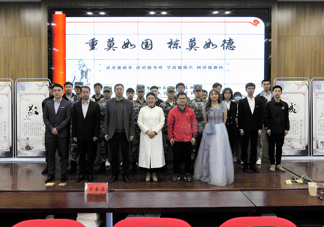 为庆祝中国共产党成立100周年,汲取思想营养,坚定信念跟党走,推进社会主义核心价值观建设,我院携手连云港高新技术产业开发区举办“道德大讲堂”,来传播道德故事,传承红色力量。高新区综合办副主任黄剑,宋跳工业园党委委员、园区办副主任汤茂峰,连云港新兴热能有限公司董事长史建霞,以及我院党委副书记万金店参加了本次活动。