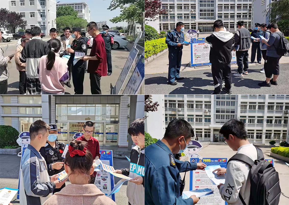 5月17日上午,学院保卫科联合辖区花果山派出所在敦行楼南侧和图书馆西侧,分发《加强自我防范,严防电信诈骗——致全市大学生的一封信》和《花果山派出所反诈骗简易手册》等防骗宣传材料。花果山派出所庞国栋警官给过往的同学分发宣传单时,不断嘱咐同学们,要提高防骗安全意识,在学习和生活中,始终坚持“八个凡是“和“六个一律”。