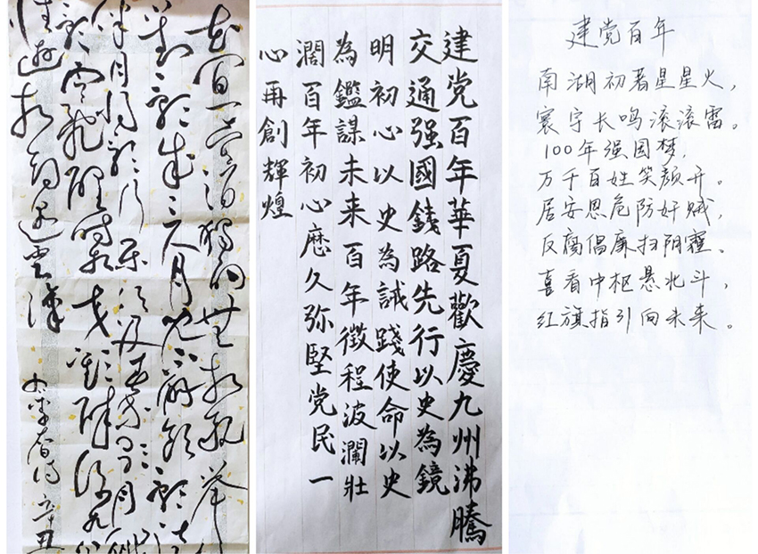 4月上旬至中下旬,协会在全院范围内开展了“百年峥嵘岁月稠”书法比赛,组织青年学子通过书法这一中华优秀传统文化瑰宝展现建党百年光辉历程与丰功伟绩。比赛吸引书法爱好者踊跃参加,他们尽情挥洒笔墨,谱写青春赞歌。楷书结体遒劲,行书如行云流水,草书似龙飞凤舞……最终,包括第六届全国大学生艺术展演艺术作品类一等奖获得者王哲作品在内的十幅作品分获一、二、三等奖。