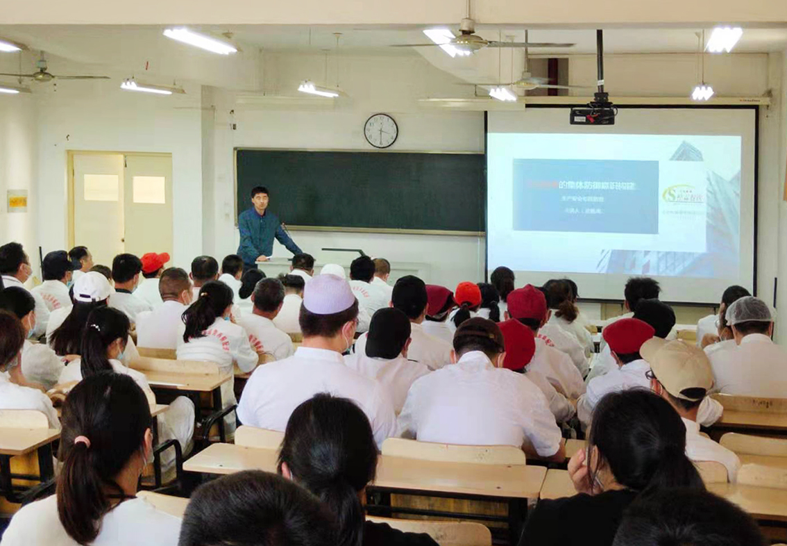 培训会上,武锦鸿围绕学校食品安全存在的风险隐患,结合实例对食品采购、运输存储、加工制作、用具消毒、环境卫生、消防安全、食物中毒预防与控制等方面规范进行说明。对食品安全法律法规、学校食堂食品安全职责、从业人员餐饮服务操作规范及食品生产流通环节等方面知识进行了详细讲解。整场讲座深入浅出、重点突出,为与会人员上了一堂及其生动的餐饮管理与食品安全课,参训人员受益匪浅,取得了良好效果。