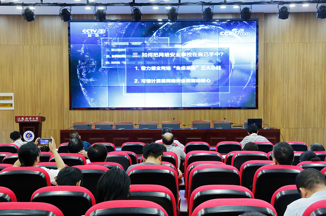 会上,教职工还集体观看了中国工程院院士沈昌祥在《中国经济大讲堂》所作的视频讲座:“做主动免疫的网络安全防线“。