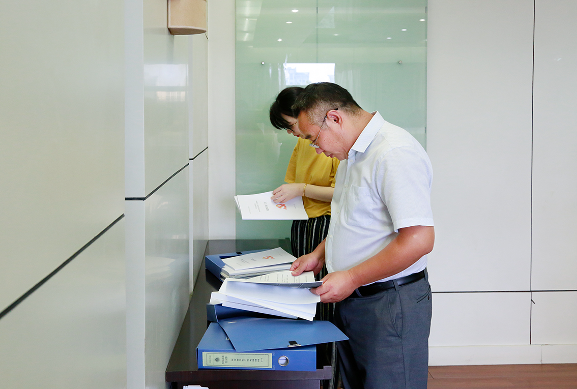 在听取汇报后,验收组详细查阅了相关材料和基础台账,并实地考察了样板支部建设阵地。