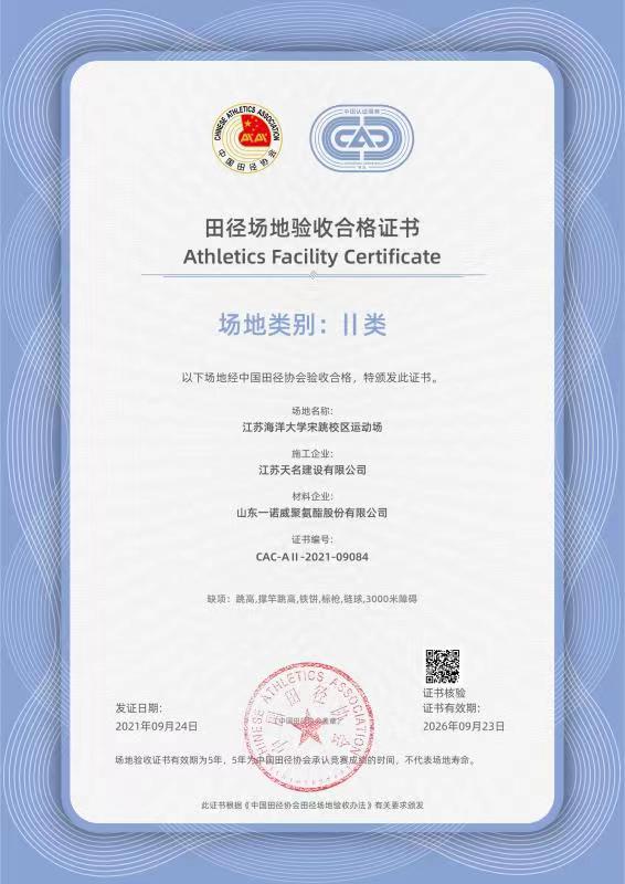 工程自开工建设以来,各参建单位克服了诸多困难,科学组织施工,抓安全、保质量。新建的江苏海洋大学宋跳校区运动场通过中国田径协会合格验收,并颁发ɪɪ类场地证书。宋跳校区运动场的建成,极大的满足了校区师生运动健身的需要,美化了校园环境,是一项重大的民生工程。