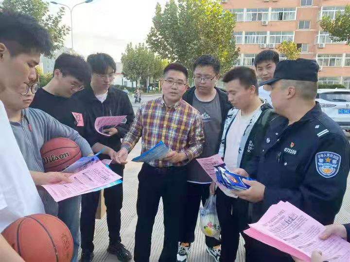 10月13日是2021年国家网络安全宣传周电信日。学院保卫科和辖区花果山派出所民警在校园内为师生分发《反诈骗简易手册》、《致全市大学生的一封信》等防诈骗宣传单。