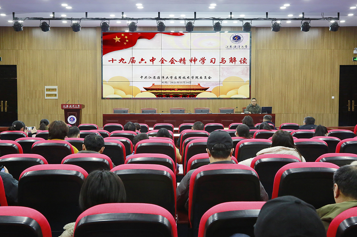 为深入学习贯彻党的十九届六中全会精神,准确把握全会精神实质和重大部署,自觉用全会精神武装头脑、指导实践、推动工作,11月24日下午,学院党委在敦行楼201报告厅召开党的十九届六中全会精神专题学习会。会议由院党委副书记时树奎主持,全院教职工参加。