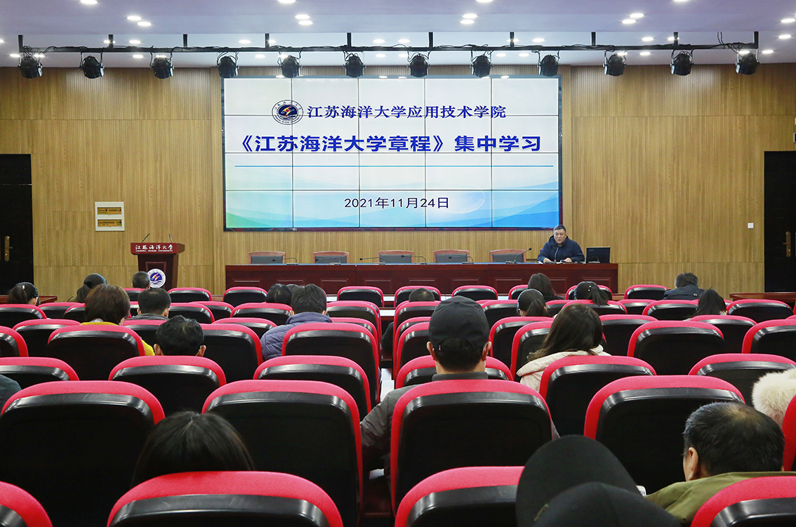 为了加大《江苏海洋大学章程》的宣传力度、树立《章程》的执行意识、完善《章程》制度保障,11月24日,学院全体教职工在敦行楼报告厅集中学习了《章程》。本次学习会由院长丁兆奎主持。
