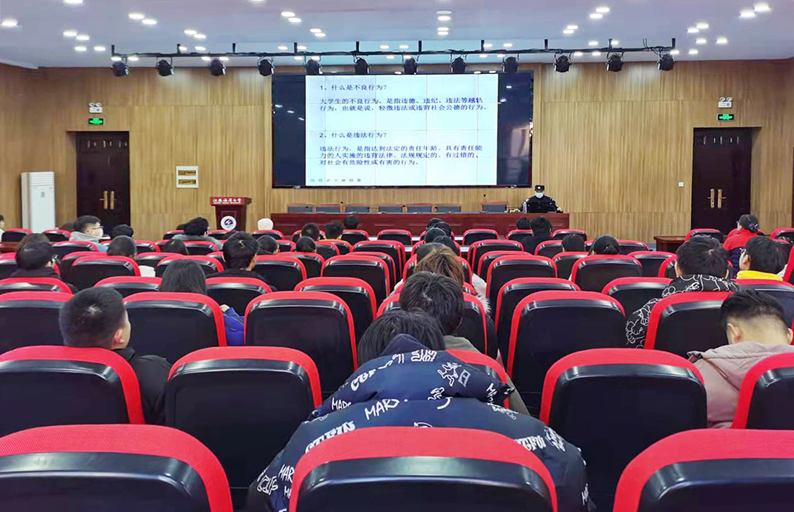 按照《江苏海洋大学关于开展2021“宪法宣传周”系列活动的通知》精神,学院保卫科联系宋跳校区辖区花果山派出所民警曹海兵来我院敦行楼报告厅为师生做法制讲座。